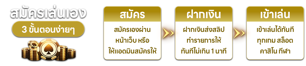 ตอบ : - กรอกข้อมูลส่วนตัวในหน้าสมัครสมาชิก ระบุเบอร์โทรศัพท์และบัญชีธนาคาร รอรับ username/password ผ่าน SMS จากนั้นเข้าสู่ระบบและเริ่มเล่นได้ทันที
